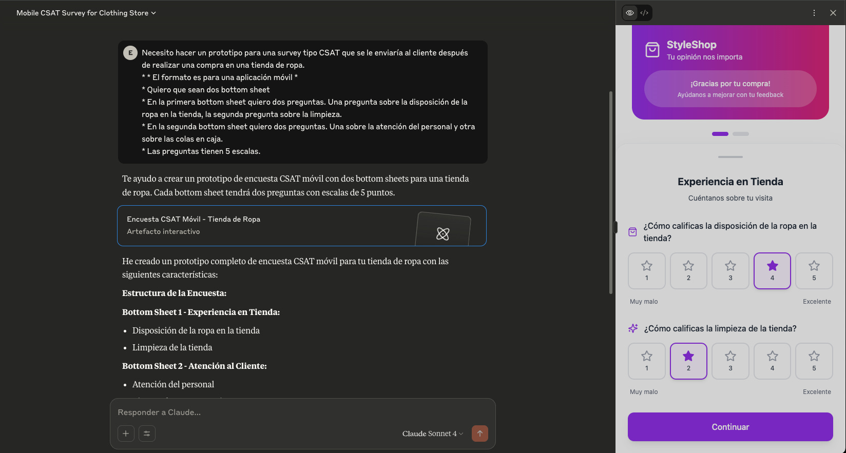 Aquí podéis ver un ejemplo donde le he pedido que genere una encuesta para cuando un cliente ha realizado una compra.