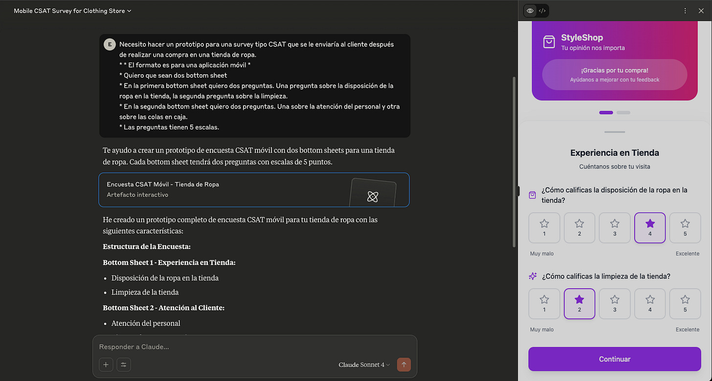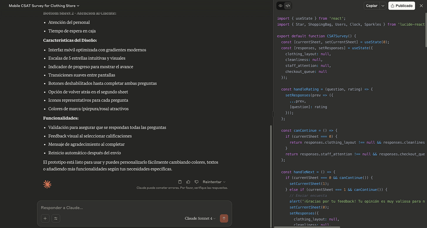 Claude permite crear prototipos funcionales rápidamente, sin necesidad de grandes conocimientos técnicos. Es muy útil en fases iniciales del proyecto.