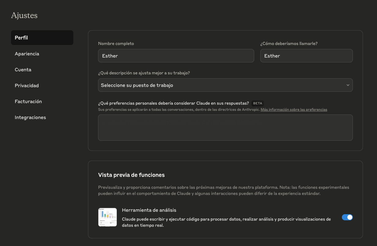 Al comenzar a usar Claude, es importante familiarizarse con la configuración para personalizar tu experiencia: